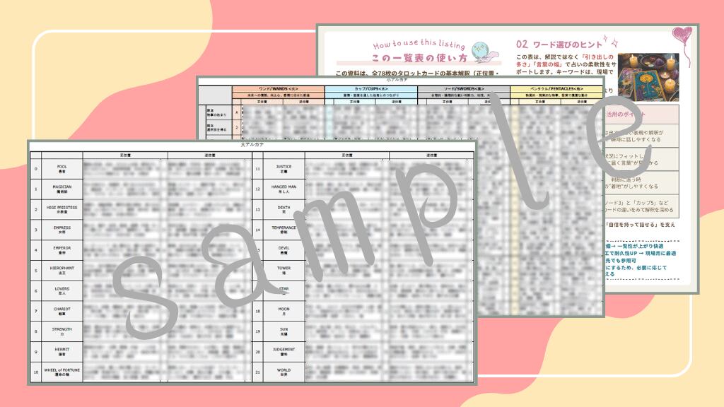 ・各カードごとに「正位置・逆位置」の解釈付き=合計1,000ワード